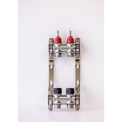 Varmego ® Razdelnik&Sabirnik INOX 304 FLAT-Priključak napajanja 1ˮ-Priključak razvoda 3/4ˮ [Kugla ventil+Kugla ventil] Sa nosačem-2 grejna kruga