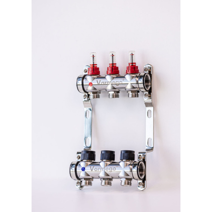 Varmego ® Razdelnik&Sabirnik INOX 304 BAMBOO-Priključak napajanja 1ˮ-Priključak razvoda 3/4ˮ [Merač protoka 0-5L/min+Termostataski ventil] Sa nosačem/3 grejna kruga