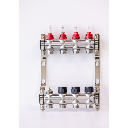 Varmego ® Razdelnik&Sabirnik INOX 304 BAMBOO-Priključak napajanja 1ˮ-Priključak razvoda 3/4ˮ [Merač protoka 0-5L/min+Termostataski ventil] Sa nosačem/4 grejna kruga