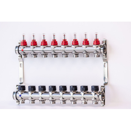 Varmego ® Razdelnik&Sabirnik INOX 304 BAMBOO-Priključak napajanja 1ˮ-Priključak razvoda 3/4ˮ [Merač protoka 0-5L/min+Termostataski ventil] Sa nosačem/8 grejna kruga