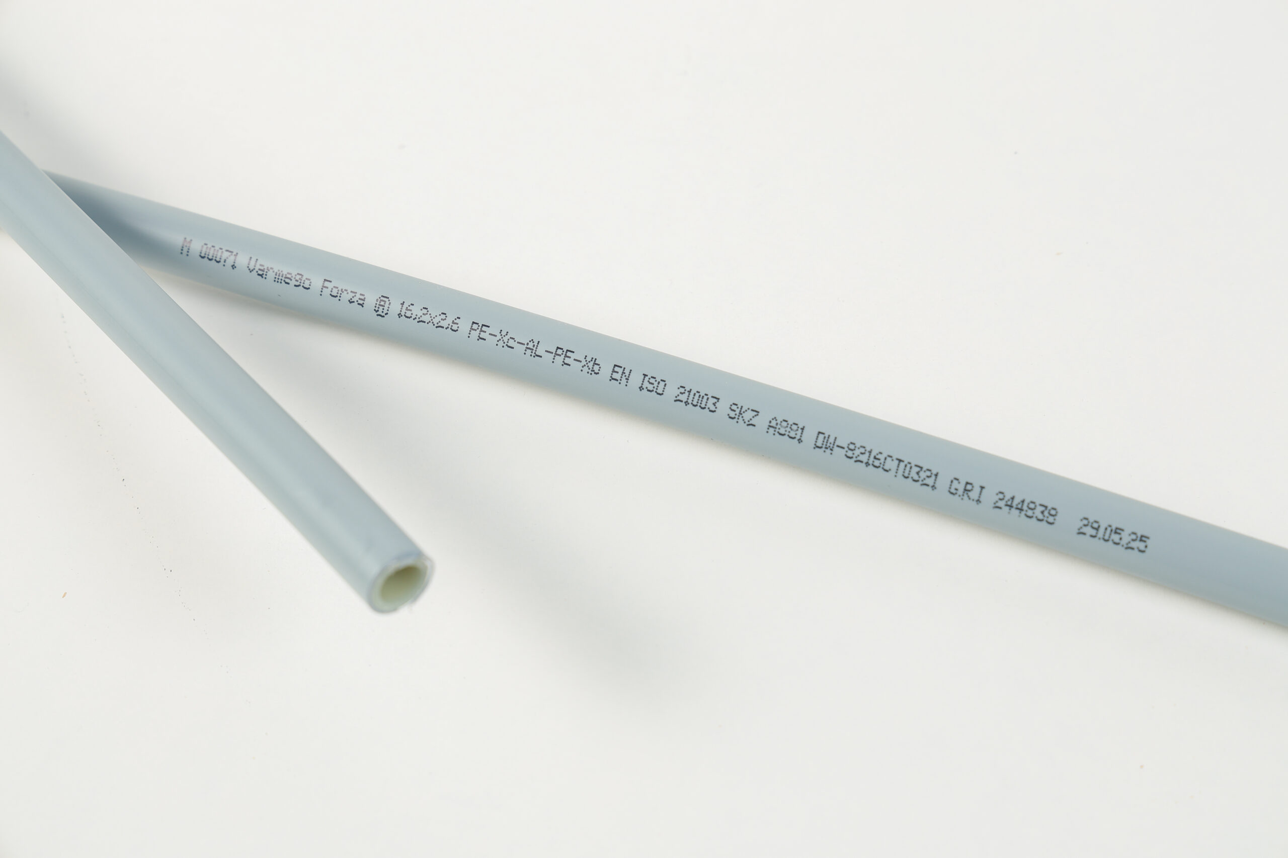 Varmego ® Forza su višeslojne cevi izrađene od umreženog polietilena PE Xc kao osnovni sloj,aluminijumski sučeono zavareni aluminijumski sloj i završni sloj od umreženog polietilena PE Xb,sa lepkom između slojeva.