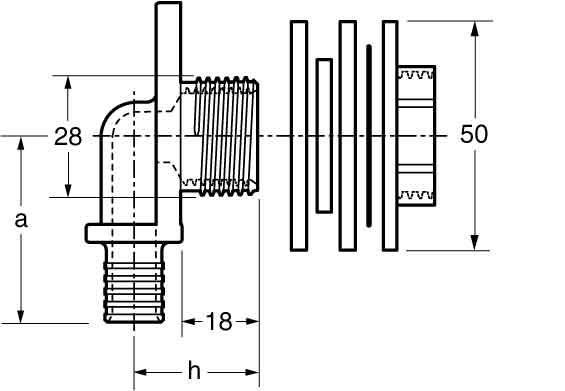 Varmego ® Jentro Koleno zidno za ugradbeni vk pokretna navlaka aksijalna sa krajem na navoj 16-1/2ˮUN/ SDR 7,4/90°/Todo&Forza