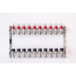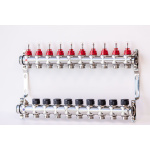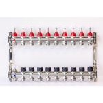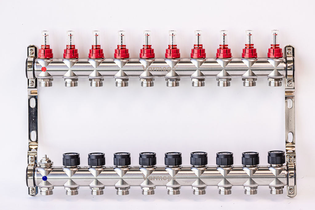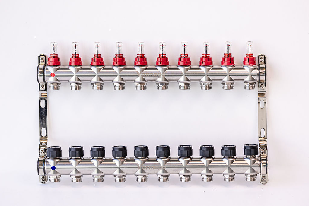 Varmego ® Razdelnik&Sabirnik INOX 304 BAMBOO-Priključak napajanja 1ˮ-Priključak razvoda 3/4ˮ [Merač protoka 0-5L/min+Termostataski ventil] Sa nosačem/10 grejna kruga