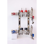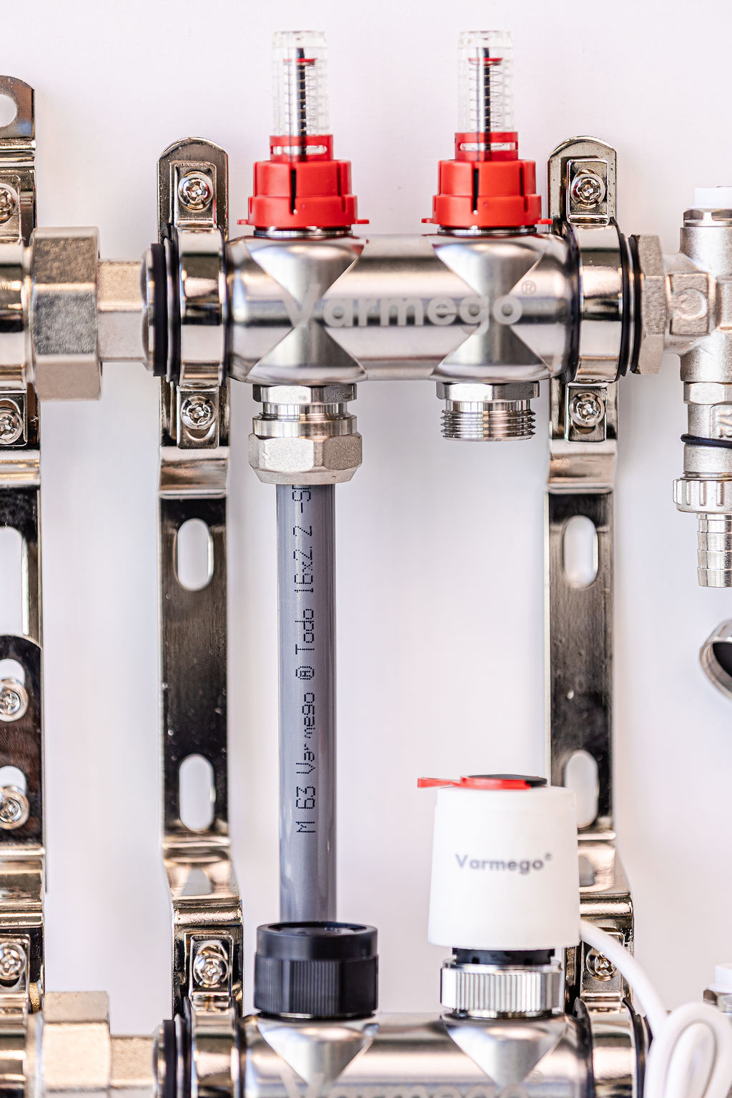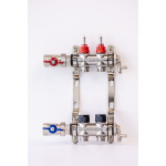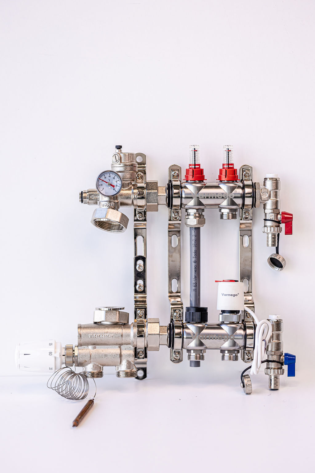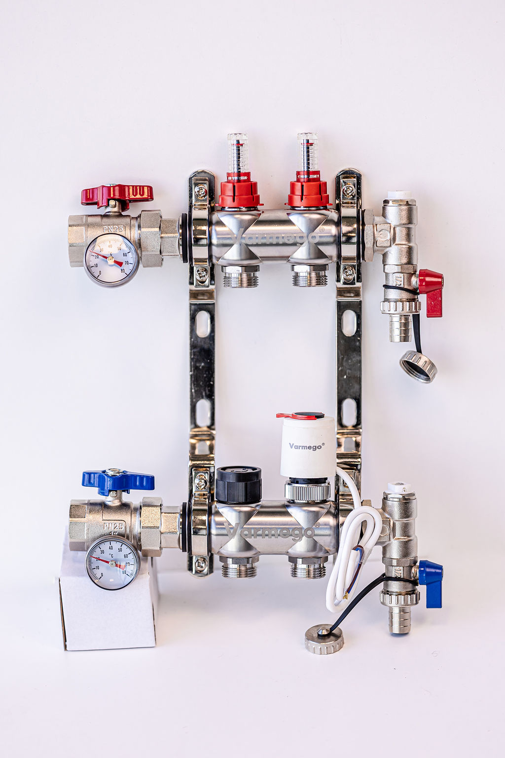 Varmego ® Razdelnik&Sabirnik INOX 304 BAMBOO-Priključak napajanja 1ˮ-Priključak razvoda 3/4ˮ [Merač protoka 0-5L/min+Termostataski ventil] Sa nosačem/2 grejna kruga