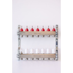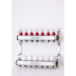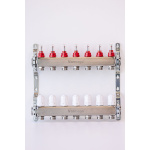 Varmego ® Razdelnik&Sabirnik INOX 304 FLAT-Priključak napajanja 1ˮ-Priključak razvoda 3/4ˮ [Merač protoka 0-5L/min+Termostataski ventil] Sa nosačem-7 grejnih krugova
